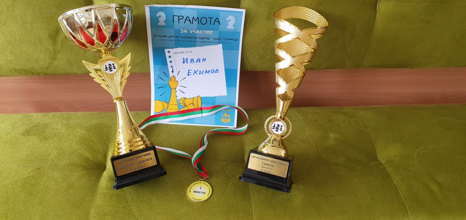 Иван Екимов спечели детски турнир по шахмат, който се проведе в Стражица. Без нито една загуба, с 5 победи и 2 равенства Иван се нареди първи сред 33 деца от цялата страна. Със силното си представяне, 9-годишният Иван спечели целия турнир, като изпревари в класирането състезатели от възрастовата група на 14 и 12-годишните