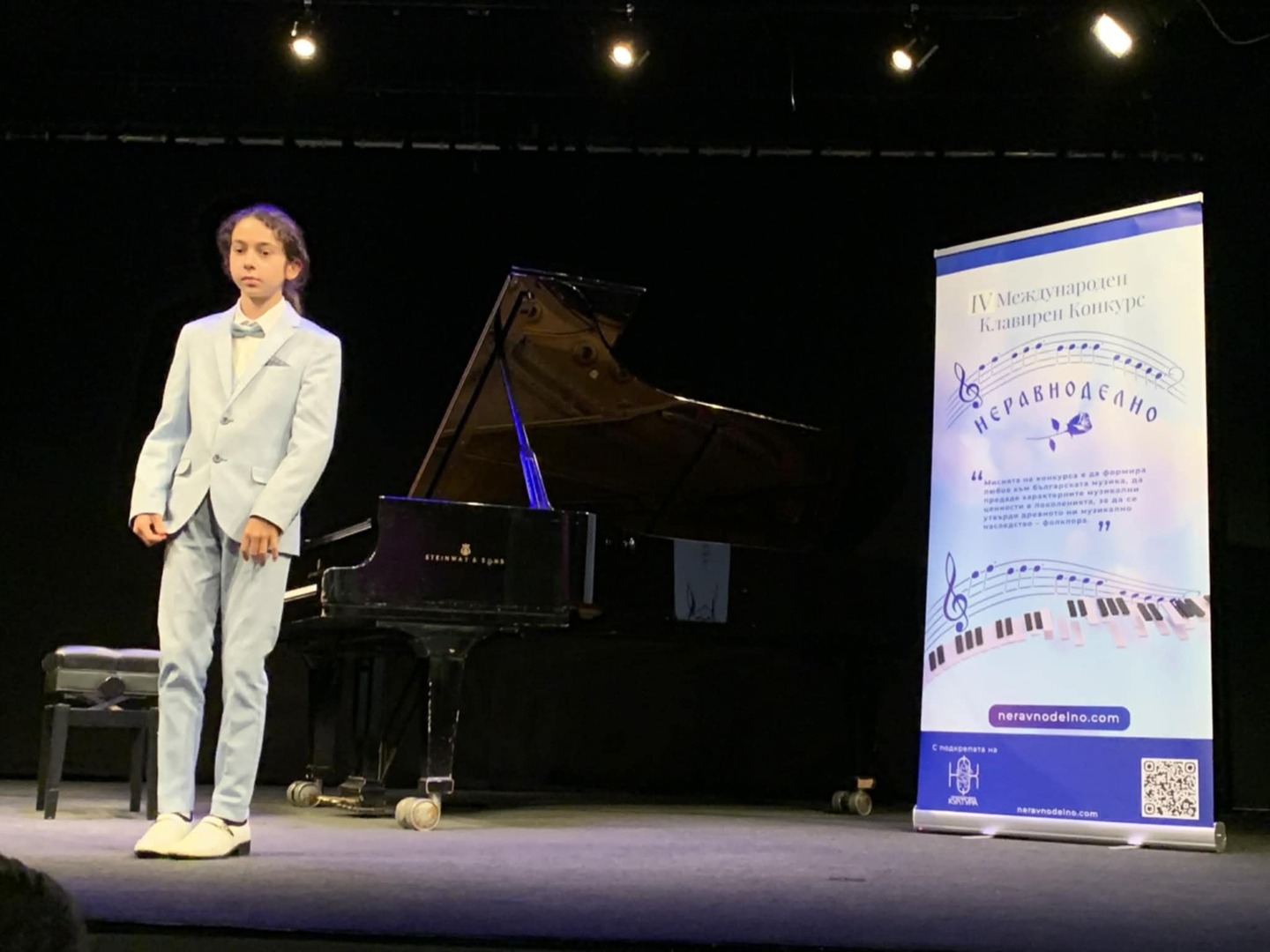 Александър Стоянов от 6. А клас с първа награда от Международен клавирен конкурс "Неравноделно"