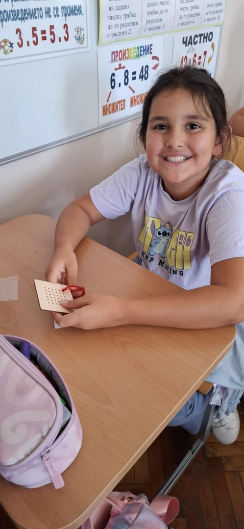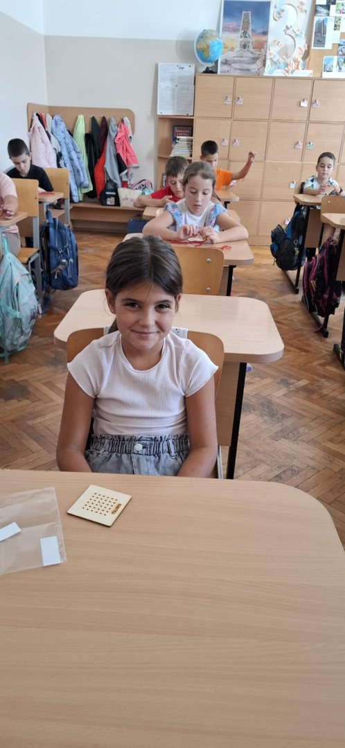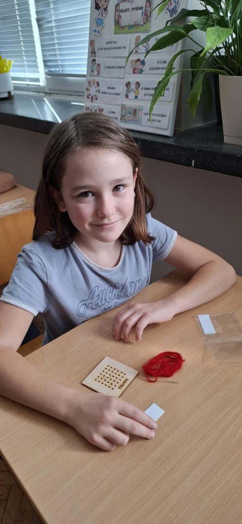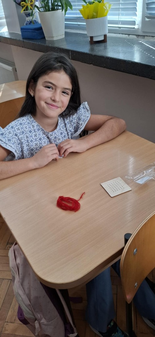 Представител от работилничка "Сръчко“ – г-жа Катя Димова предостави материали на учениците от 3"б" клас и те изработиха български шевици "Канатица - сватба".
