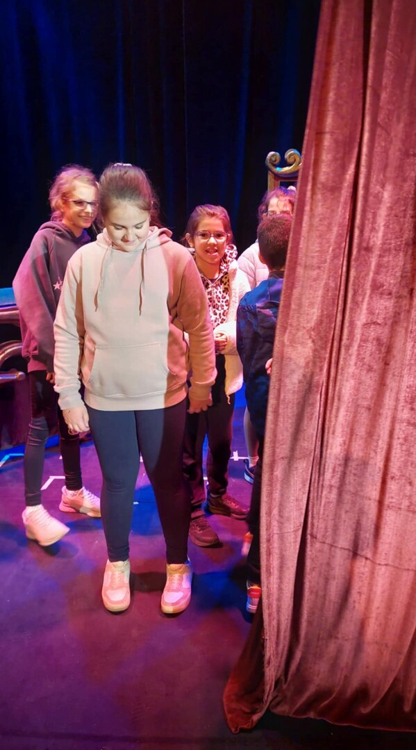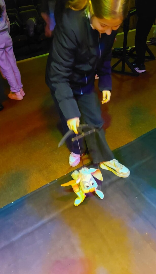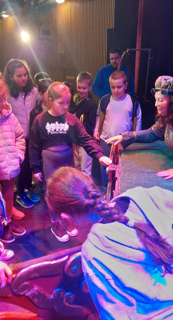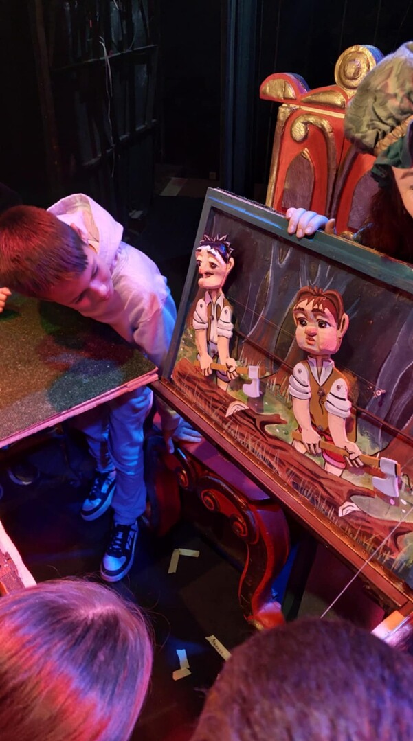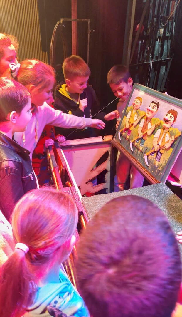 Специално внимание бе обърнато на реквизит от пиесата " Котаракът в чизми", който силно впечатли децата. Те раздвижиха декорите и научиха как се комбинират светлина, движение и глас, за да оживее персонажът на сцената.