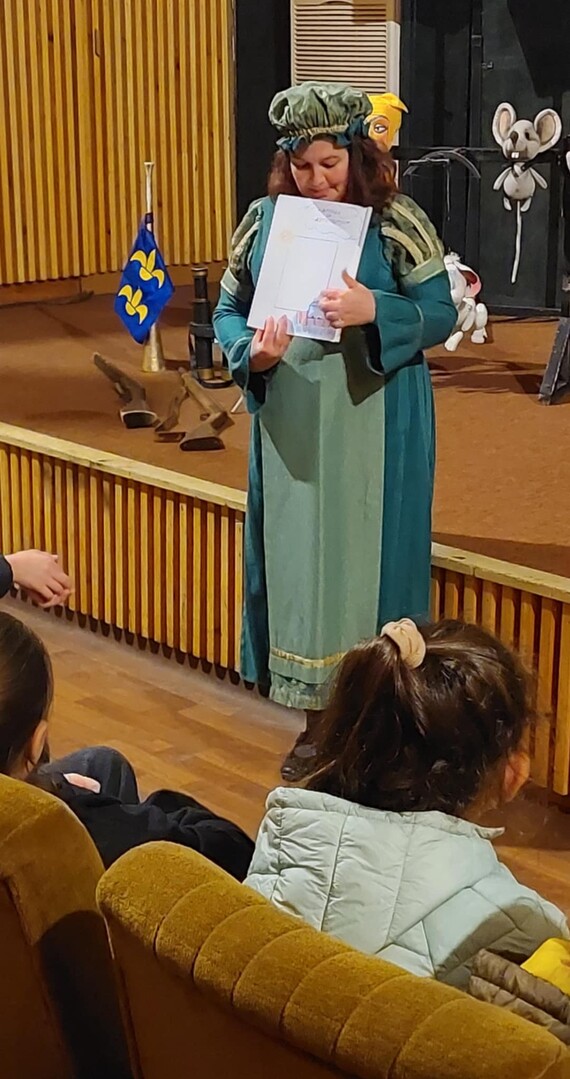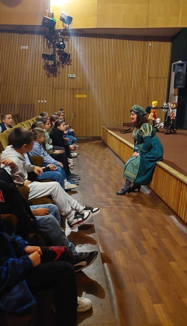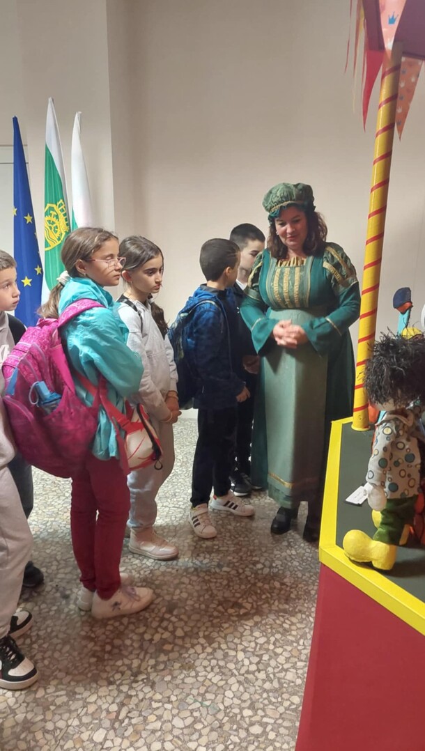 Децата бяха посрещнати от обаятелната усмивка на актрисата Радостина Андреева, която като фея с вълшебния си глас ги преведе през чудноватия свят на Кукления театър .