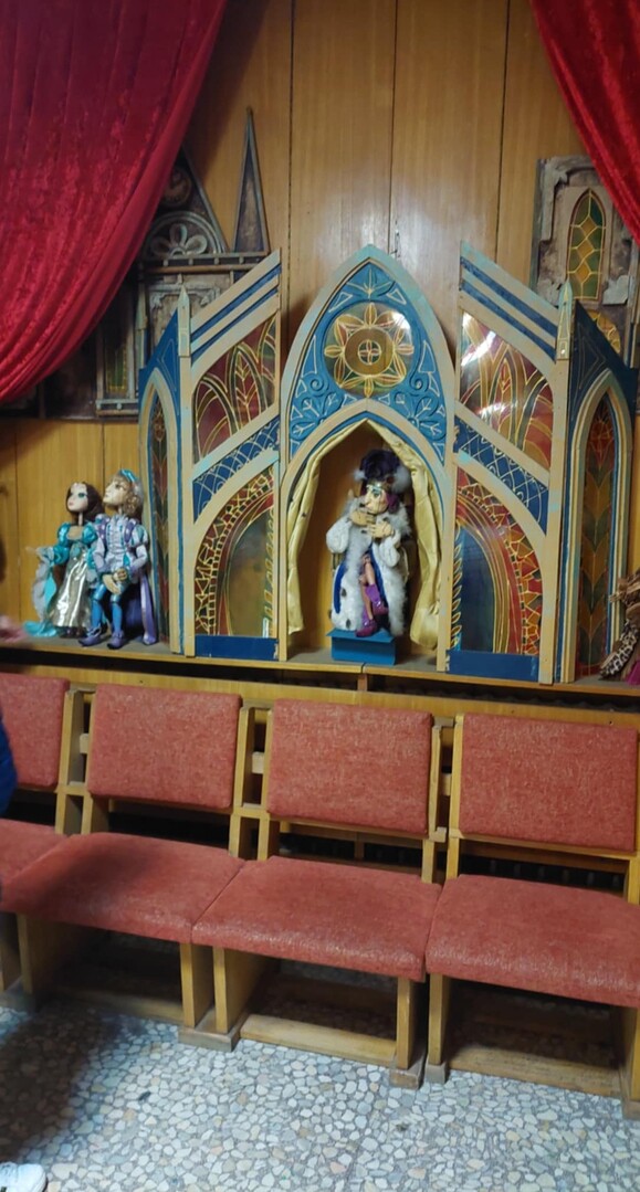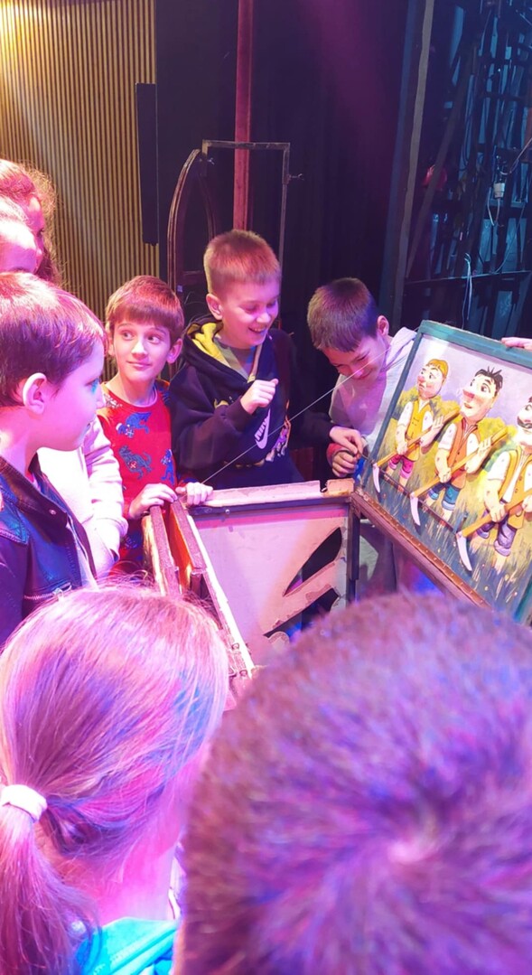 След това децата имаха възможност да стъпят на сцената на театъра , където наблюдаваха демонстрация на управление на различни видове кукли. Учениците с интерес опитаха сами да разиграват марионетки, ръкавични кукли и петрушки ,като се запознаха особеностите на кукловодната техника.