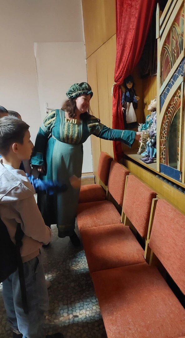 Учениците от 4б клас, клуб "Знаменити габровци "посетиха Държавен куклен театър в Габрово и проведоха образователно занятие на тема "Кой е Нено Кукладжията"