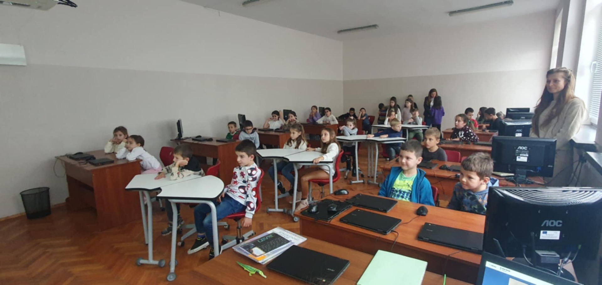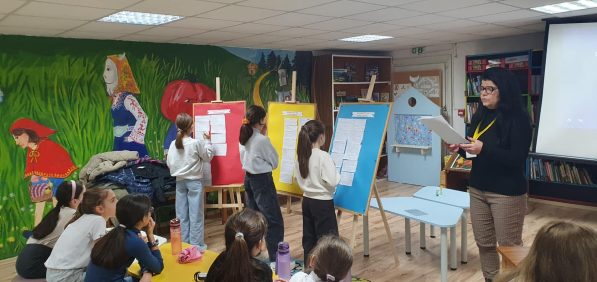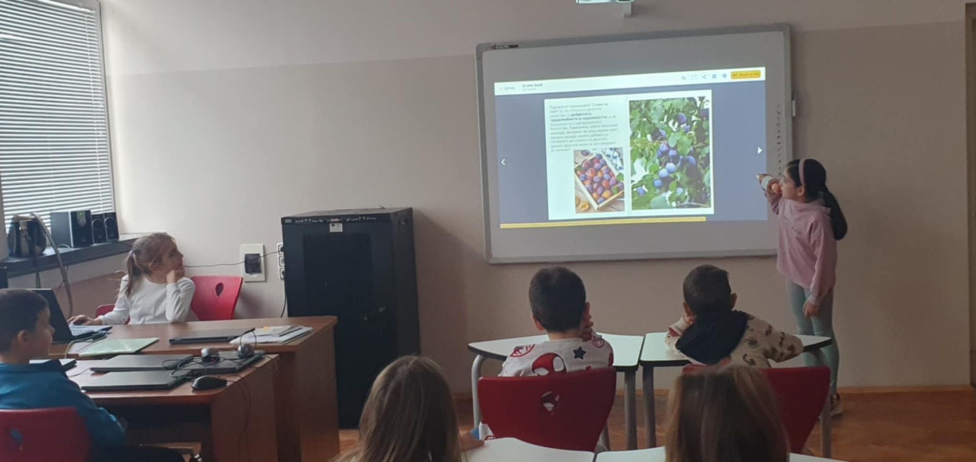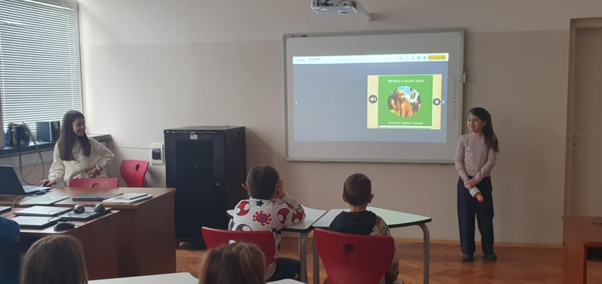 Учениците от 3 "а" клас с много старание, творчество и въображение създадоха свои дигитални книги посветени на мъдростта на приказките. Учениците работиха в екипи и индивидуално, като използваха дигитални инструменти, за да превърнат своите идеи в истински интерактивни книжки. С огромен ентусиазъм те представиха своите дигитални творби пред първокласниците – най-малките читатели в нашето училище. 📚✨ Малките творци от 3 „а“ клас представиха своите дигитални книги и в Детски отдел на Регионалната библиотека. След това забавлението продължи с отборните игри „Мъдростта на приказките”, които донесоха много усмивки, емоции и ентусиазъм на всички.