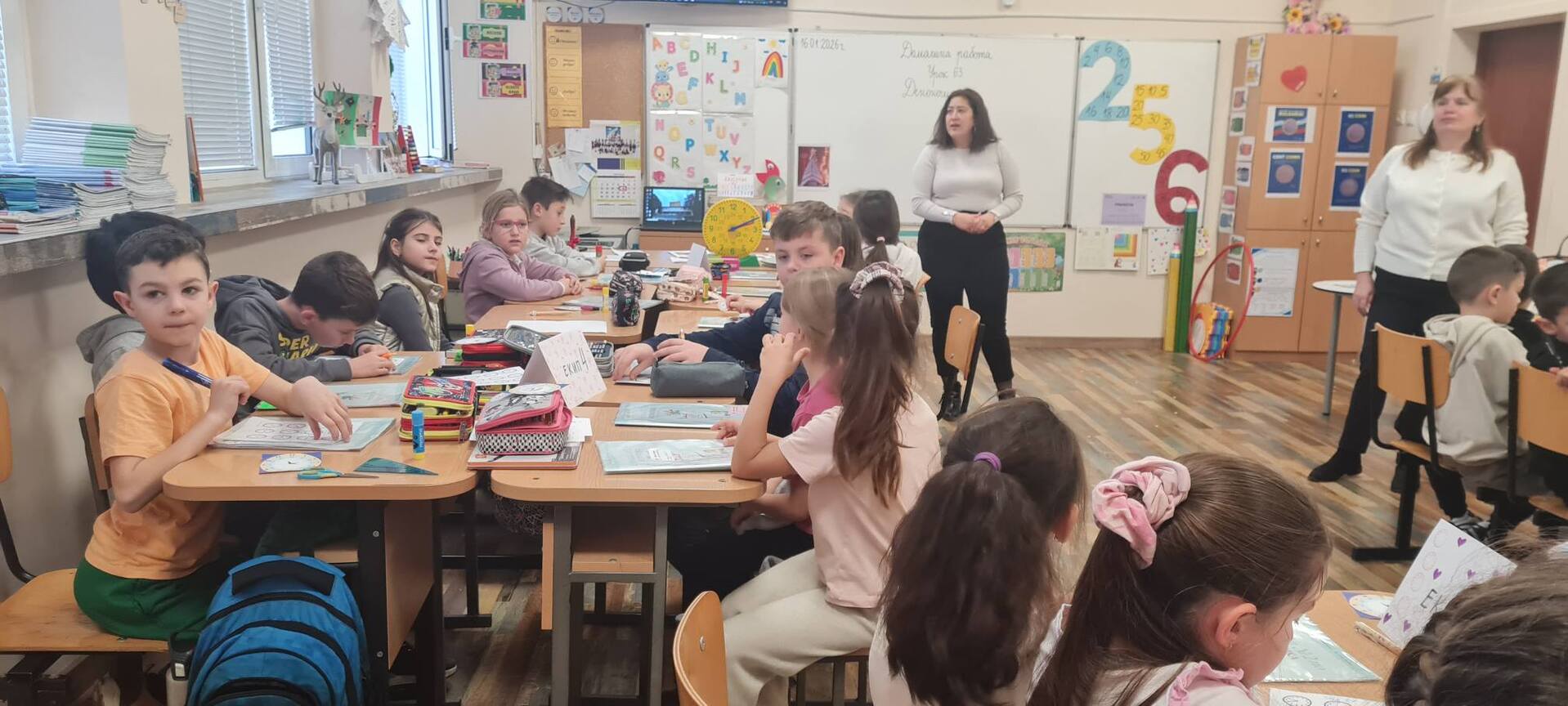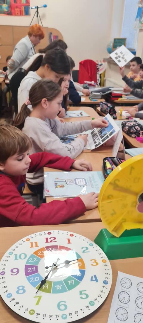 С това усещане прекрачих прага на занималнята на ГЦОУД IIБ и ГЦОУД IIВ клас на 16 януари. Като директор, но преди всичко като човек, който вярва в силата на добрия урок, имах удоволствието да наблюдавам самоподготовка по математика, превърната в истинско пътешествие във времето. В дейностите по самоподготовка заедно с мен присъства и г-жа Даниела Иванова Казанджиева – главен учител в начален етап и класен ръководител на II „Б“ клас. Тя е доказан професионалист с дългогодишен опит, висока педагогическа култура и отговорно отношение към учебно-възпитателния процес. Отличава се с умение за работа с деца, прилагане на съвременни образователни подходи и създаване на спокойна, подкрепяща и мотивираща учебна среда. Под умелото ръководство на Росица Николова Иванова – старши учител в ГЦОУД IIБ клас, и Антония Радославова Ямалиева – старши учител в ГЦОУД IIВ клас, темата „Денонощие. Час. Минута“ оживя пред очите на децата. Това не беше обикновена самоподготовка, а бинарно преживяване, в което знанието се преживяваше, а не просто усвояваше.