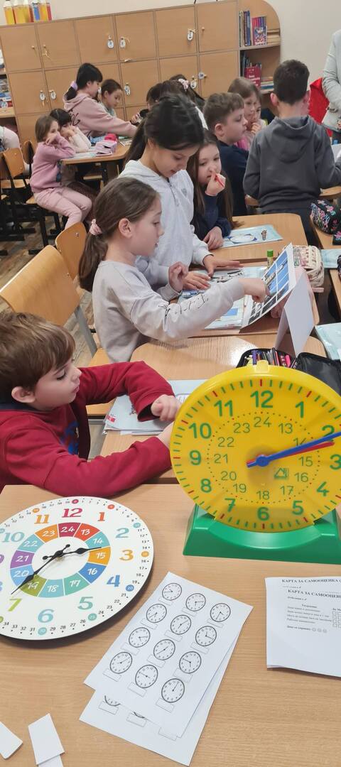 Особено впечатляваща беше практическата работа с изработените от учениците модели на часовници. Те показваха с гордост в колко часа стават, тръгват за училище, започва първият учебен час и кога идва времето за сън. В тези малки жестове се виждаше голямото – умението да свържеш математиката със собствения си живот.