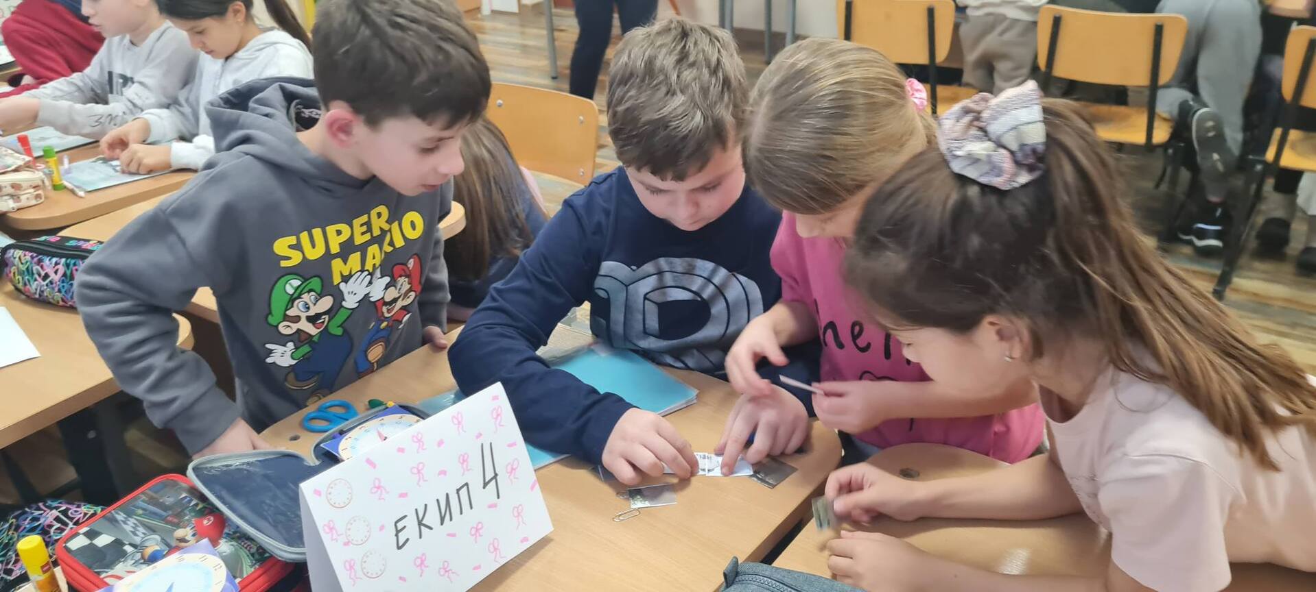 Историята на слънчевия часовник ги отведе още по-далеч – в древността, когато слънцето е било най-точният измерител. А после – рязък, вълнуващ преход към днес, към „тайната кутия“, която събуди любопитството и съревнователния дух. В нея времето беше скрито под различни форми – будилник, джобен часовник, пясъчен часовник, таймер. Всяка правилно решена задача беше ключ, всяко отворено капаче – малко открито съкровище.