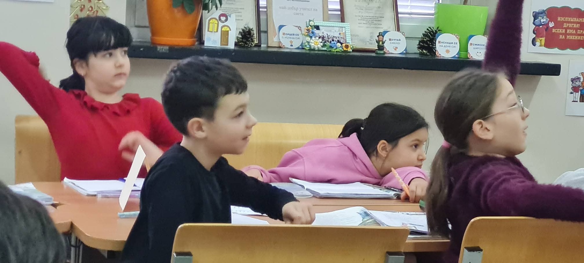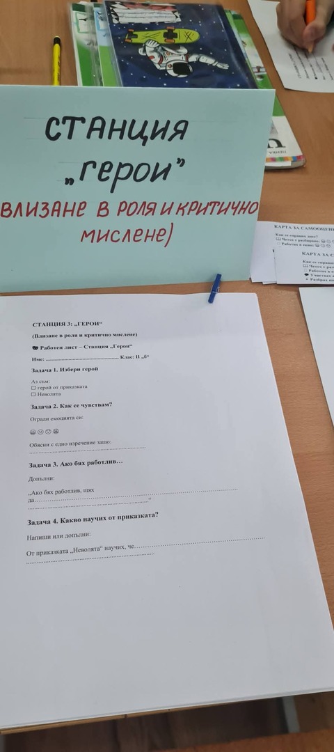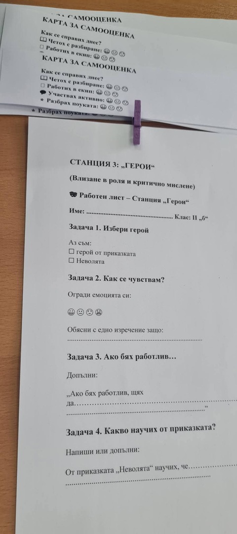 Финалът на часа беше наситен с тиха, дълбока емоция. Попълването на картите за самооценка се превърна във вътрешен разговор на всяко дете със самото себе си – какво е разбрало, как се е почувствало и какво би направило по различен начин. Това показа, че урокът е оставил следа не само в знанията, но и в ценностната система на учениците.