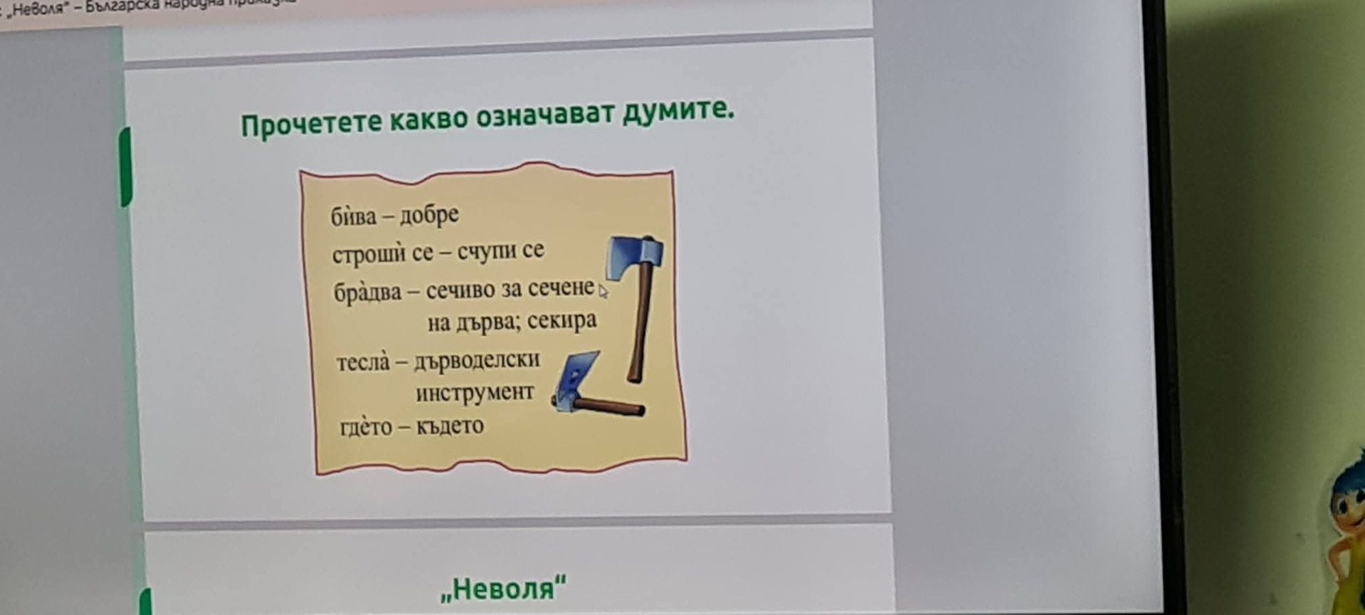 Часът беше посветен на българската народна приказка „Неволята“ – произведение, в което е събрана мъдростта на поколения и което, въпреки времето, остава тревожно актуално и днес.
