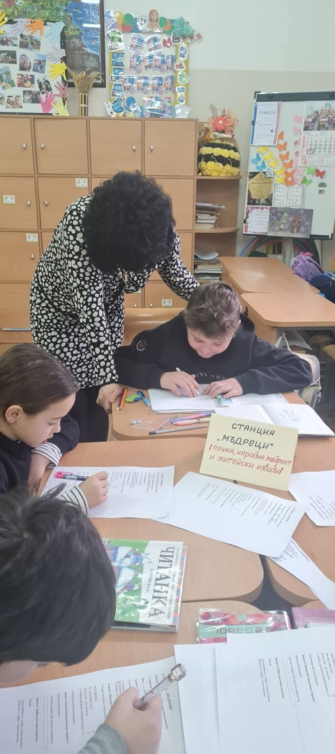 Вплетените народни мъдрости превърнаха часа в мост между миналото и настоящето. Учениците осъзнаха, че приказките не са просто истории от стари времена, а съкровищница от житейски уроци, които и днес ни учат как да бъдем по-отговорни, по-смислени и по-човечни. Народната мъдрост не остарява – тя просто чака да бъде чута и приложена.