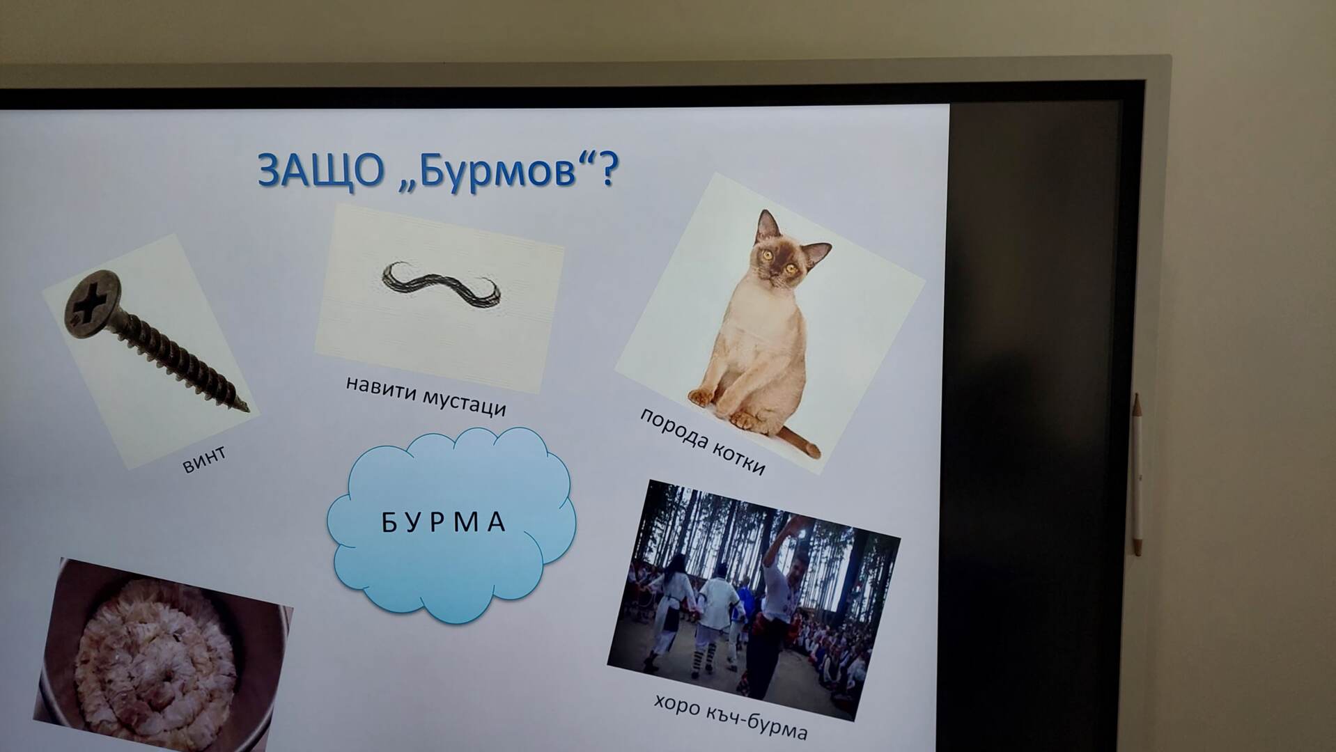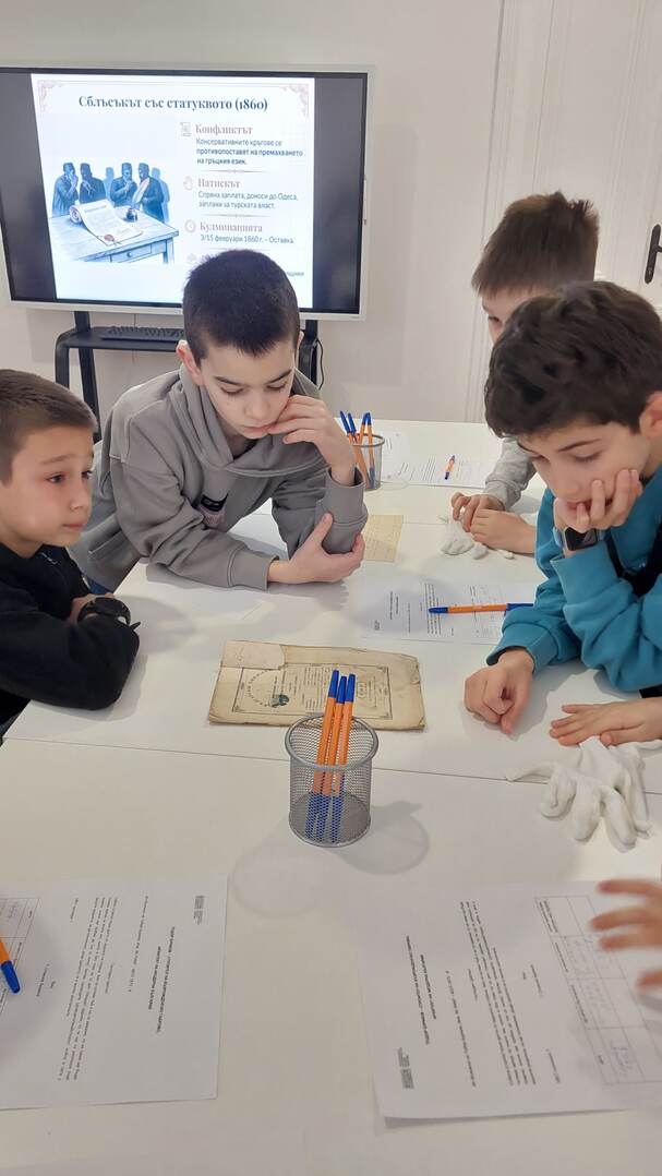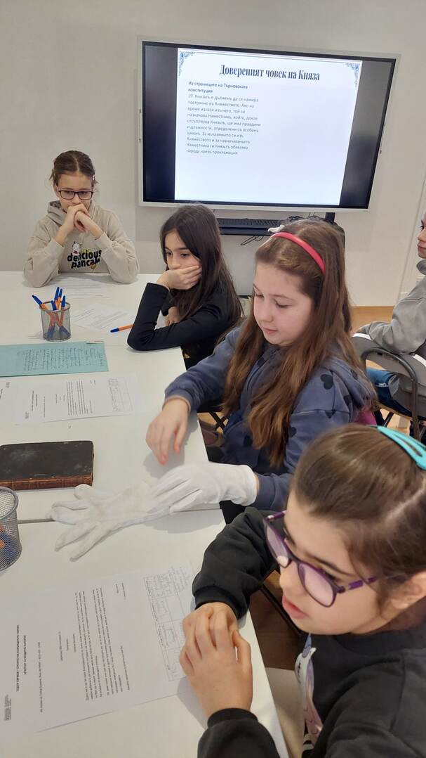 Занятието започна с кратко въведение за историческата обстановка след Освобождението. Беше представена презентация с основни факти от живота на Тодор Буров.По време на урока учениците решаваха задачи като извличаха информация от документи извадени от фонда на музея. Разделени на отбори отговаряха на въпроси свързани с живота и делото на Бурмов.Учениците показаха добри познания и интерес към темата.