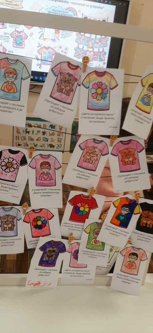 На 25.02 отбелязахме Международния ден против тормоза – ден, който ни напомня колко важни са добротата, уважението и подкрепата между учениците. Второкласниците от 2. клас ГЦОУД се включиха с вълнение и разбиране в инициативата, показвайки, че заедно можем да създадем по-спокойна и приятелска училищна среда. С много старание и ентусиазъм те изработиха малки тениски с вдъхновяващи послания: „Аз избирам добротата“, „Моята суперсила е да помагам“ и „Бъди приятел, не насилник“. Чрез своето творчество децата заявиха своята позиция срещу насилието и избраха силата на приятелството и съпричастността. Защото когато сме добри един към друг, училището става по-светло и щастливо място за всички.