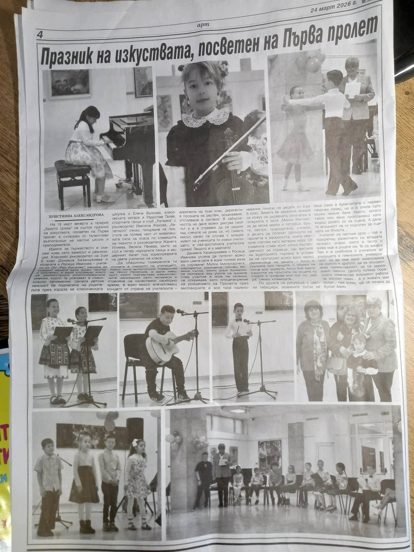 С много настроение, усмивки и вдъхновение премина вълнуващият пролетен концерт на учениците от 2.„б“ клас при ОУ „Ран Босилек“. Събитието се състоя в уютната атмосфера на Художествена галерия „Христо Цокев“ – гр. Габрово и се превърна в истински празник на детския талант.